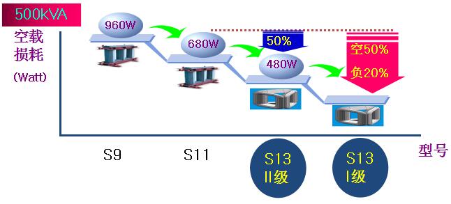 變壓器型號別損耗對比 500kVA